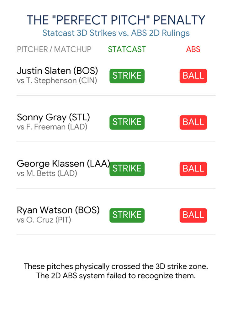 In the first week of MLB play alone, there were four casualties of the inaccurate ABS rulings that were definitively proven correct by Statcast.